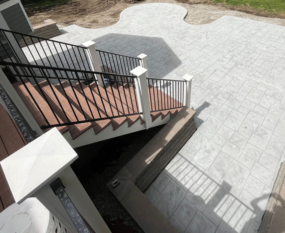 Decorative concrete patios are the perfect way to extend your living space outdoors—whether you’re enhancing an existing area or creating a brand-new focal point. With endless design possibilities, from stamped concrete patterns to custom colors and textures, these patios combine high style with lasting performance. Compared to brick or natural stone, decorative concrete is more affordable, more durable, and far easier to maintain—giving you a modern backyard upgrade that looks incredible and stands the test of time.
