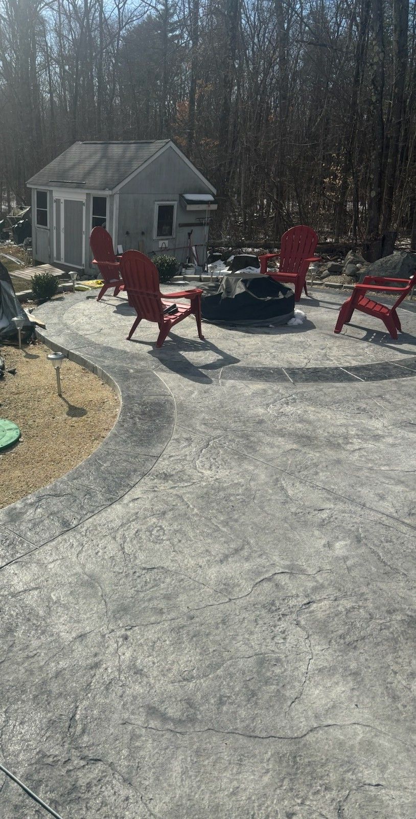 An overlay application is a polymer cement topping that is hand troweled over the existing substrate and then stamped with any pattern and enhanced with any color. The result is a fully restored finish and saves you thousands of dollars over the cost of a total replacement. The only difference you will notice is the savings!